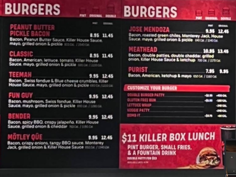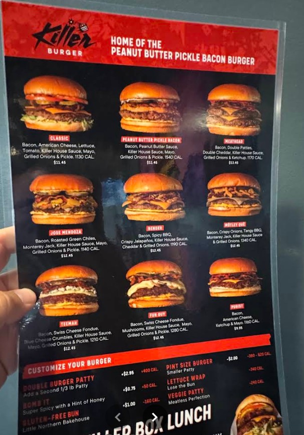 My friend and I recently went to Killer Burger after deciding against trying a new burger spot in town with not-so-great reviews. We both ordered the Classic Burger (original size) for $11.40 each, along with onion rings (advertised as share-size) and fries. The burgers themselves were very good, though the buns were cold and definitely would have been better warmed. The fries were tasty and a good portion, but the onion rings were on the small side for something marketed as shareable. The staff was friendly and helpful, and I really appreciated that they’re open until 10:00 p.m. Something that’s hard to find in Bend. On the downside, I wish they had milkshakes or a dessert option other than cookies or rice crispy… ; the drink selection was limited to sodas and beer on tap. One thing I found odd was the interior design — there’s a wooden pergola structure inside the restaurant. It’s not structural or architectural, so it feels out of place and a little confusing. Wonder why they did this? Overall, it was a good experience and I’d go back, though I do think the prices run a little high for what you get. With so many great local burger spots in Bend at similar price points (like Blue Eyes), I’d be more inclined to support local places first.